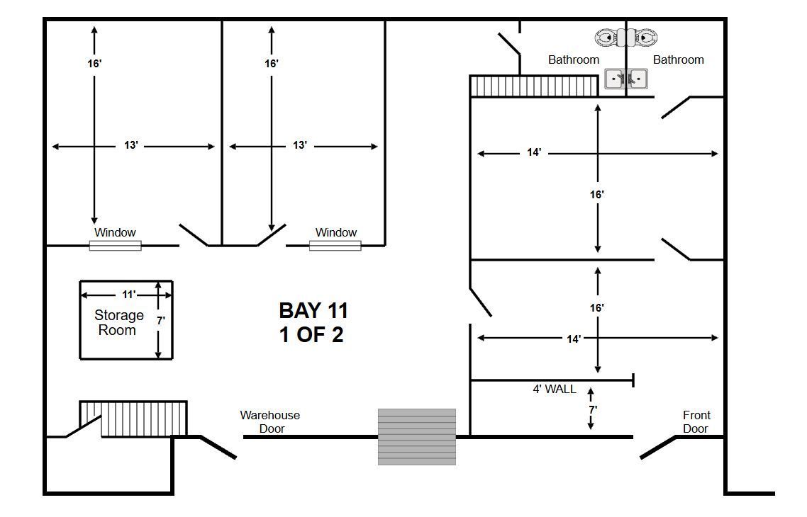Office/Admin Rooms: Two 16' x 13' rooms with windows